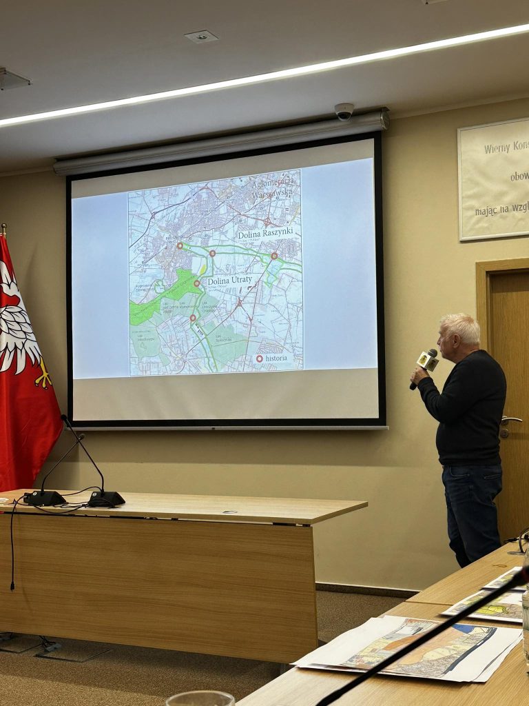 W dalszej części spotkania przedstawiliśmy mapy graficzne prezentujące proponowany przebieg granic Parku Krajobrazowego Dolin Utraty i Raszynki.