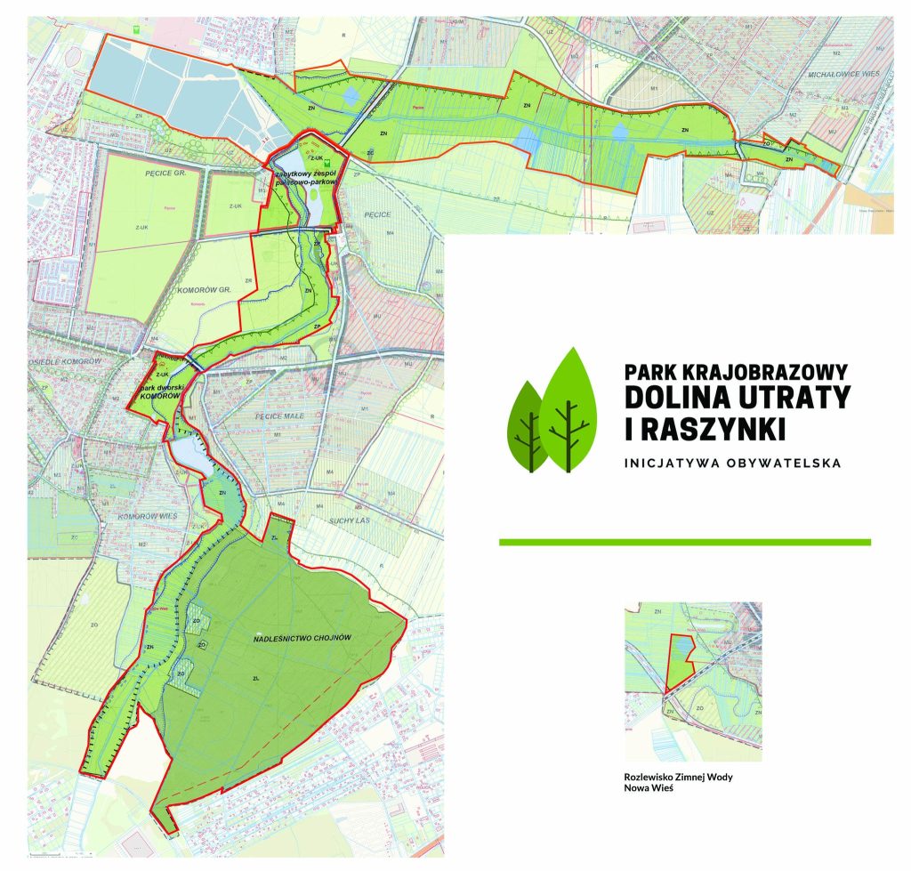 Spotkaliśmy się z zarzutem, że prezentowana przez nas mapa różni się od wcześniej prezentowanej wersji. Rzeczywiście na etapie procedowania naszego wniosku przez Radę Gminy Michałowice pojawiły się pewne modyfikacje. W pierwotnym wniosku naszej inicjatywy uchwałodawczej w ogóle nie było mowy o dokładnej mapie. Podczas zbierania podpisów pod naszą inicjatywą informowaliśmy mieszkańców o tym, że wnioskujemy o objęcie ochrona bliskiego sąsiedztwa rzek Utraty – ze szczególnym uwzględnieniem jej rozlewisk, Raszynki oraz małego fragmentu rozlewisk rzeki Zimnej Wody w Nowej Wsi. Informowaliśmy również, że dokładny przebieg parku zostanie ustalony w procesie uzgodnienia pomiędzy Gminą a Sejmikiem Województwa i poprzedzony zostanie audytem środowiskowym, który wskaże, które tereny zasługują na ochronę parkową. Prezentowane przez nas mapy mają zatem charakter poglądowy i nie są ostatecznymi granicami proponowanego parku krajobrazowego.